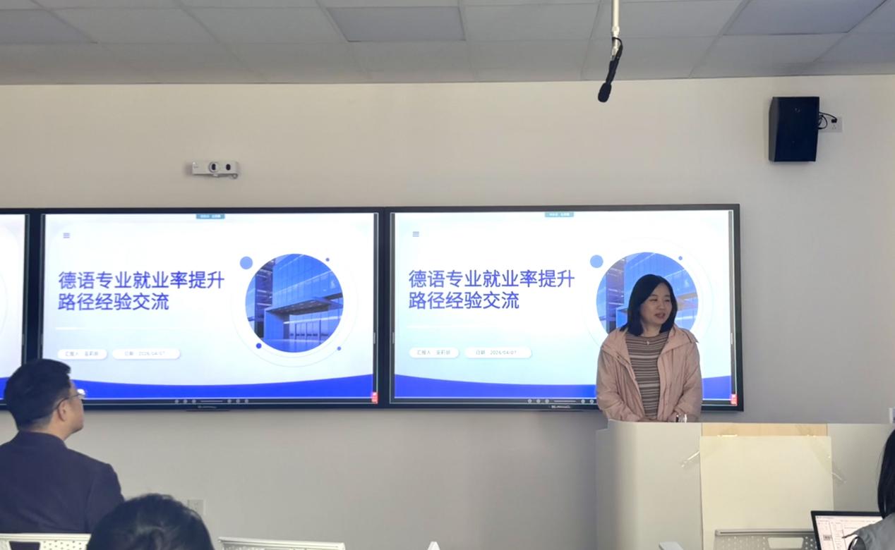 工作交流环节,会议特别邀请法学院徐从德老师作交流分享,他围绕全程领跑、靶向助力、协同育人三方面分享就业工作先进经验;德语系主任巫莉丽老师从合力、贯通、传承、节点、引导五大路径,交流就业工作实践心得,为参会人员提供借鉴。